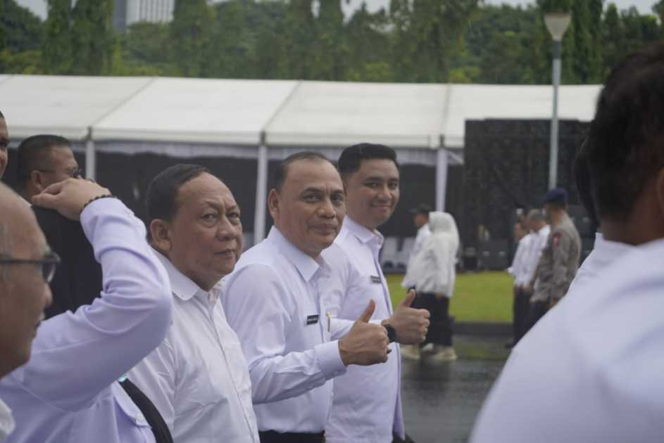 Hujan Tak Surutkan Semangat, Wali Kota dan Wakil Wali Kota Metro Jalani Gladi Bersih di Jakarta