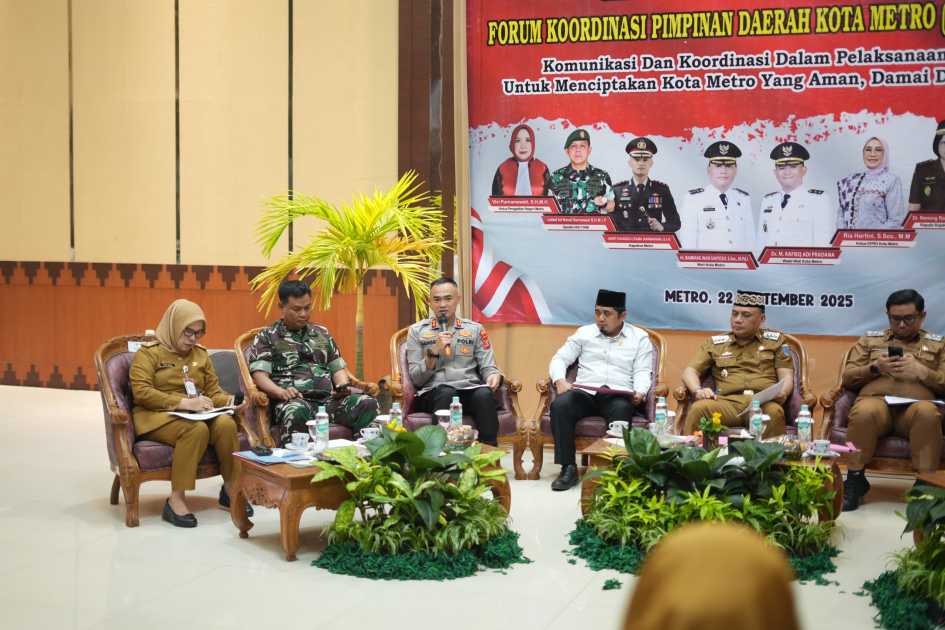 Sekretaris Daerah Kota Metro, Bayana dalam memimpin rapat menyampaikan bahwa rapat Forkopimda ini bertujuan untuk memperkuat koordinasi lintas sektor dalam menghadapi dinamika sosial yang muncul belakangan ini.