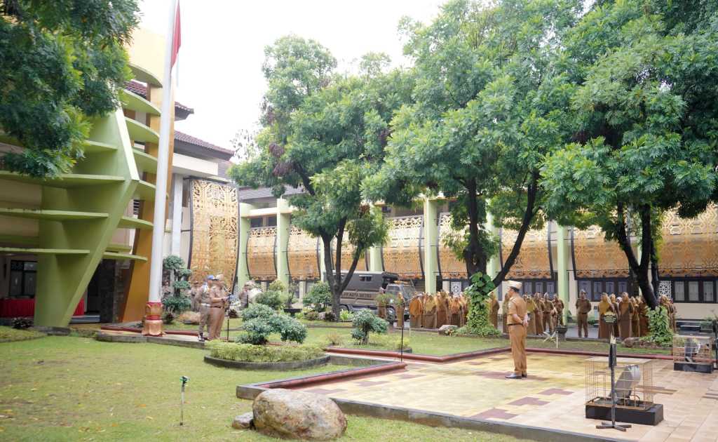 Rafieq Adi Pradana selaku Wakil Wali Kota Metro secara perdana memimpin apel pagi di halaman Kantor Pemerintah Daerah Kota Metro, Senin (24/02/2025).